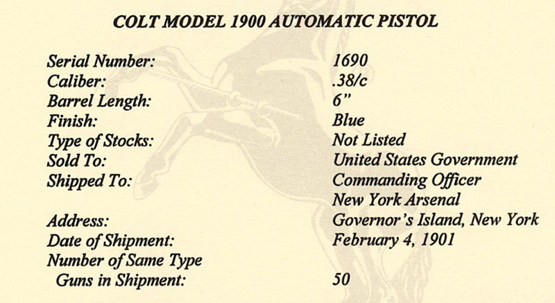 Private Collection Colt Model 1900 Sight Safety Serial Number 1690,