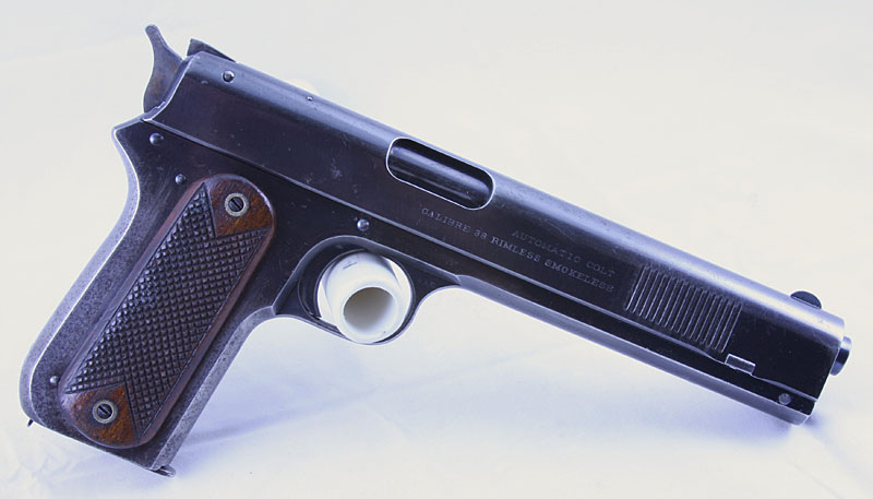"AUTOMATIC COLT" over "CALIBRE 38 RIMLESS SMOKELESS". Slide