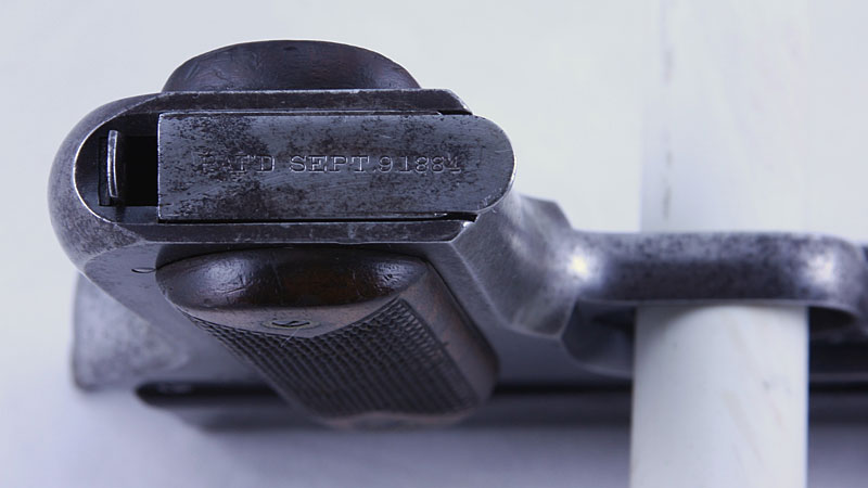 Colt Model 1900 left side slide markings - "BROWNING'S