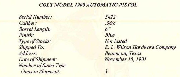 Beaumont, Texas on November 15, 1901. This pistol is