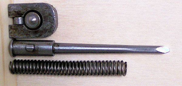 Firing assembly from top to bottom: Firing pin stop, firing pin and