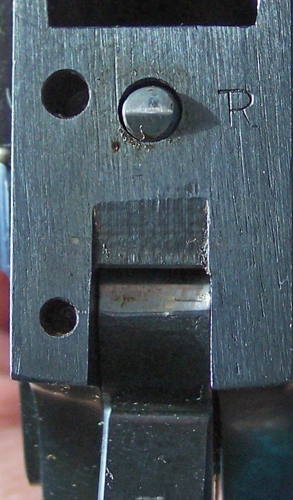 Close-up of underside of slide. Notice how firing pin