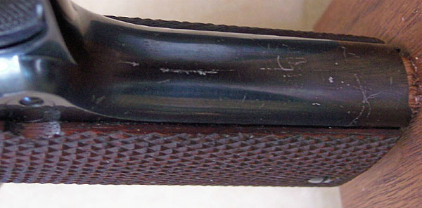 Close-up of right side slide markings and serial number.