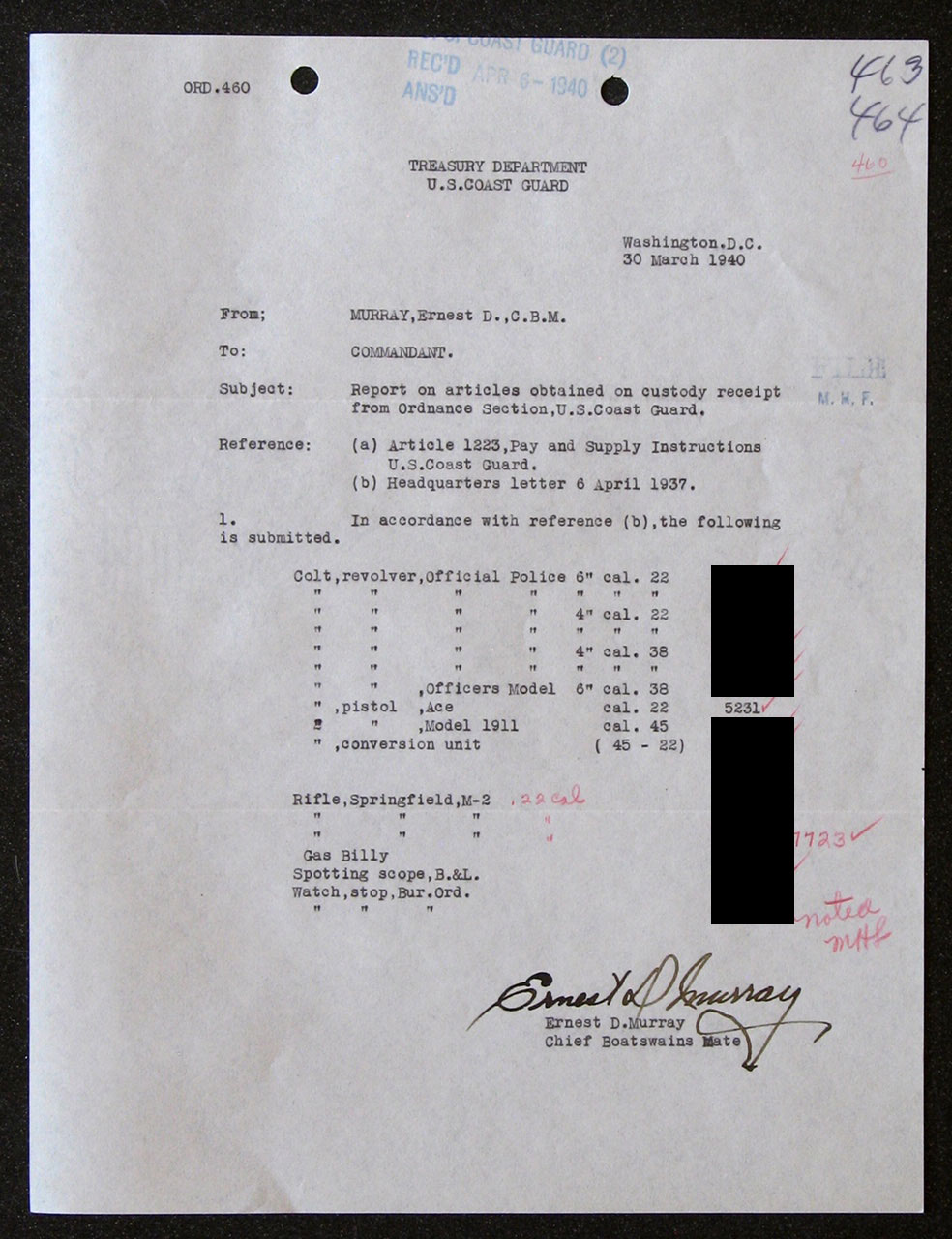 Pistol was one of a 200 shipment to the US Coast Guard.