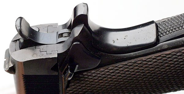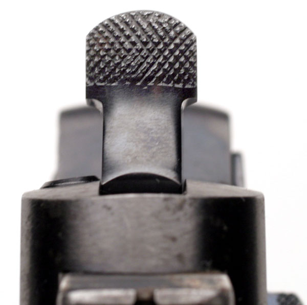 Top view showing shortened wide spur hammer. The hammer modification began with this