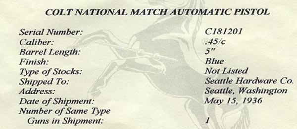 C181201 was a single gun shipment shipped to Seattle Hardware Co., Seattle,