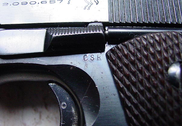 hole with a "G". On the C.S.R. inspected M1911A1 pistols, the mark
