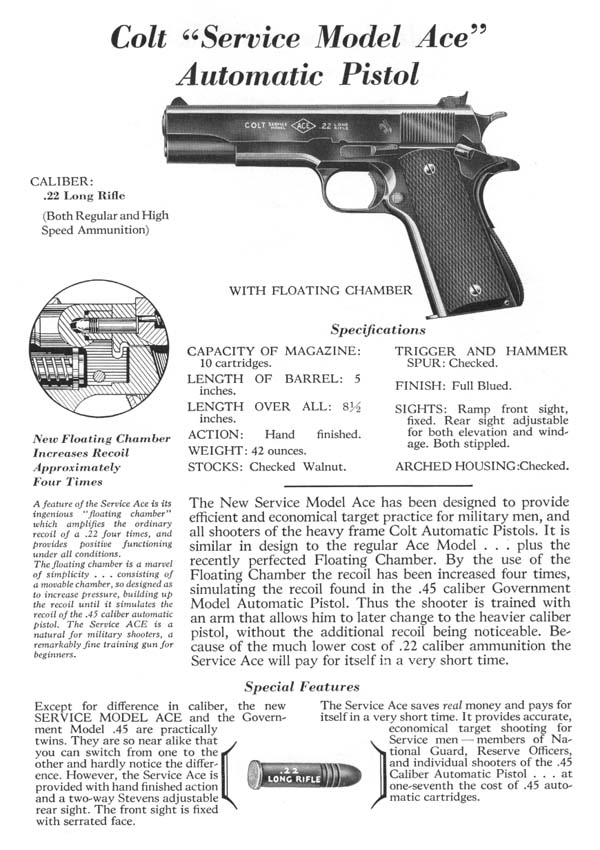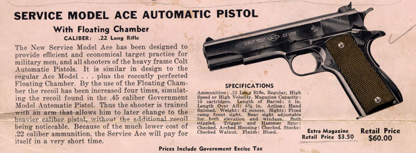 In 1939, the Colt Service Model Ace was the most expensive standard production Colt offered for sale.  The retail price was $60.