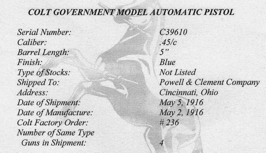 pistol was shipped to Powell & Clement Company,