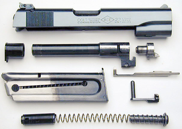 Early Pre-WWII (ca. 1938) Numbered .22-.45 Conversion Unit U229 - complete with original box, instructions and all accessories. Two tone magazine with "Service Model" designation on the floorplate. Box is earliest type that lacks center compartment for recoil spring.