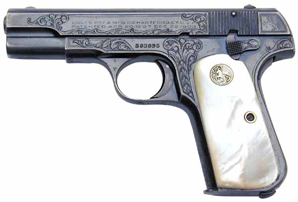 Colt Model 1903 Pocket Hammerless .32 ACP, Factory "A" Engraved, Blue Finish with Mother of Pearl Grips