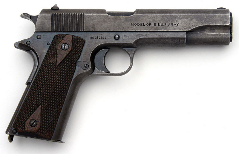 Colt Model 1911 US Marine Corps Contract - .45 cal. S/N 217289 shipped to the United States Marine Corp, Philadelphia, PA on January 8, 1918 in a shipment of 400 pistols. This example has some replaced parts (slide is from a slightly later Model 1911). Barrel is original and is marked on the hood with a non-serif "H" and "P". Gun is being presented as-found.