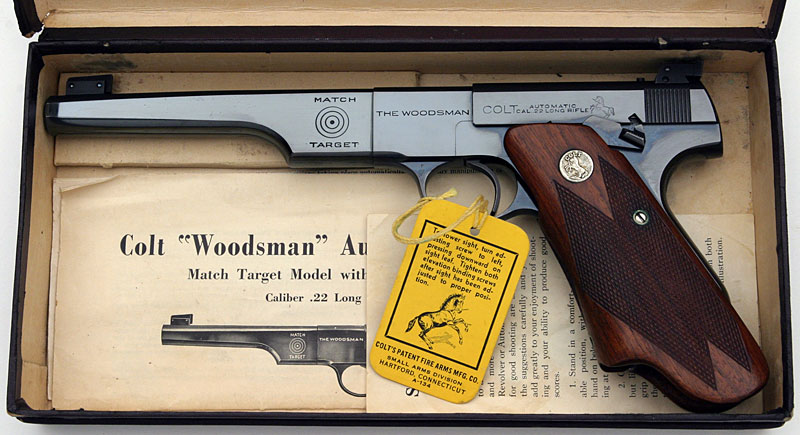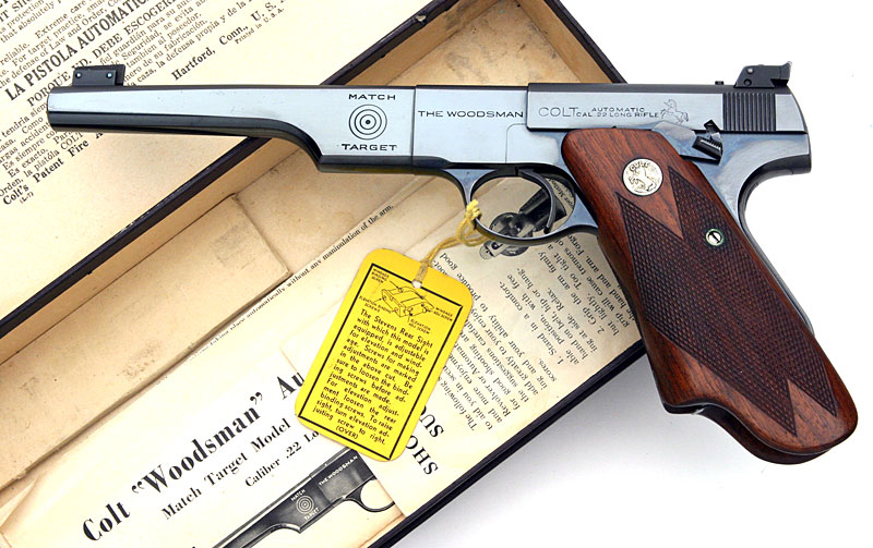 Colt Automatic Pistol Woodsman Model .22 LR, Heavy Barrel Match Target with Patridge Sights box end labels.