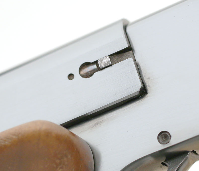 Colt Woodsman Target Pistol .22 LR Serial Number 55070 - Close-up of adjustable rear sight. |