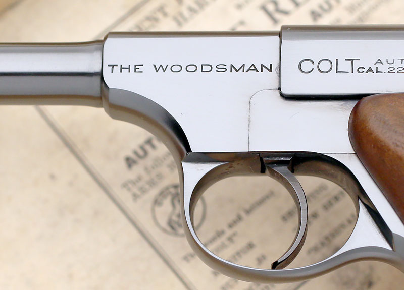 Colt Woodsman Target Pistol .22 LR Serial Number 55070 - Left side markings "THE WOODSMAN". Notice how "VP" mark in upside down triangle is missing.