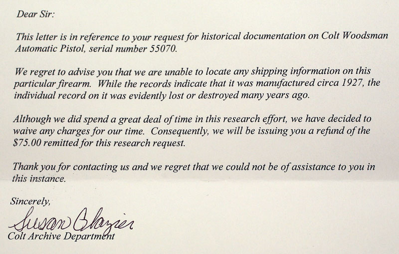 Colt Woodsman Target Pistol .22 LR Serial Number 55070 - Pencil barrel with the latest patent date of September 3, 1918.