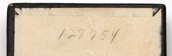 Type I box bottom photo to illustrate construction of the box.  Also note the hand written serial number on the bottom of the box at the top of the photo.  As the pistols entered Colt's shipping room, the serial numbers were recorded in pencil on the bottom of the box.  These numbers were entered into the shipping ledgers as the guns were shipped to fill orders.