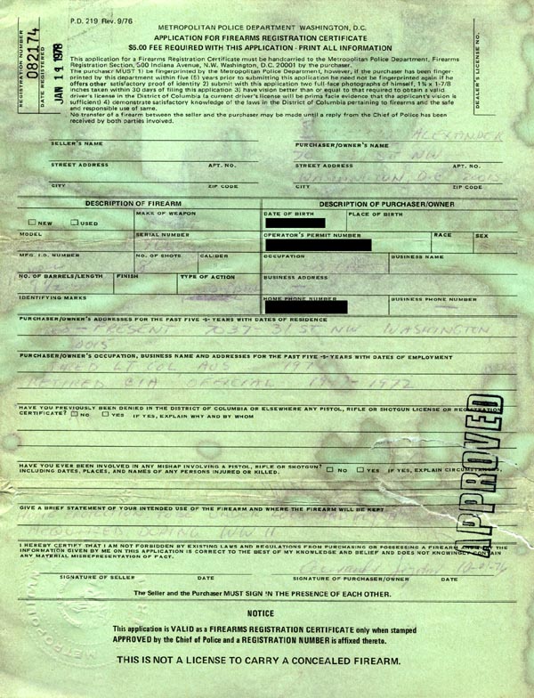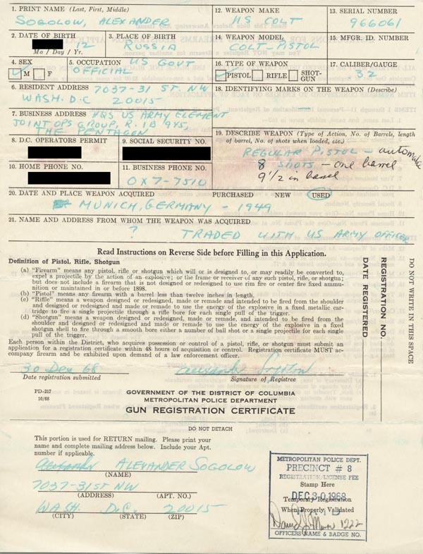 Alexander Sogolow's Gun Registration Application for