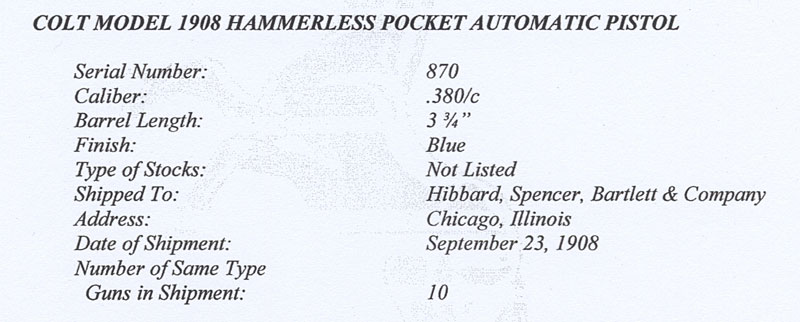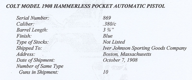 Colt Model 1908 .380 ACP serial number 869 - First