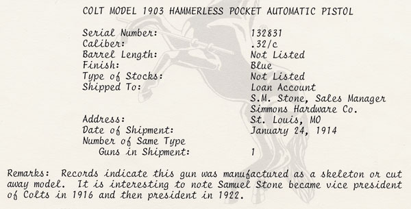 One of ten factory cutaway Colt Model 1903 Pocket Hammerless .32 ACP