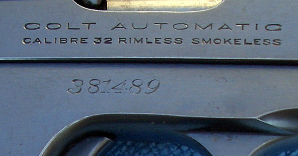Model M .32 serial number 381489 with factory inscription "G.P.D. No.