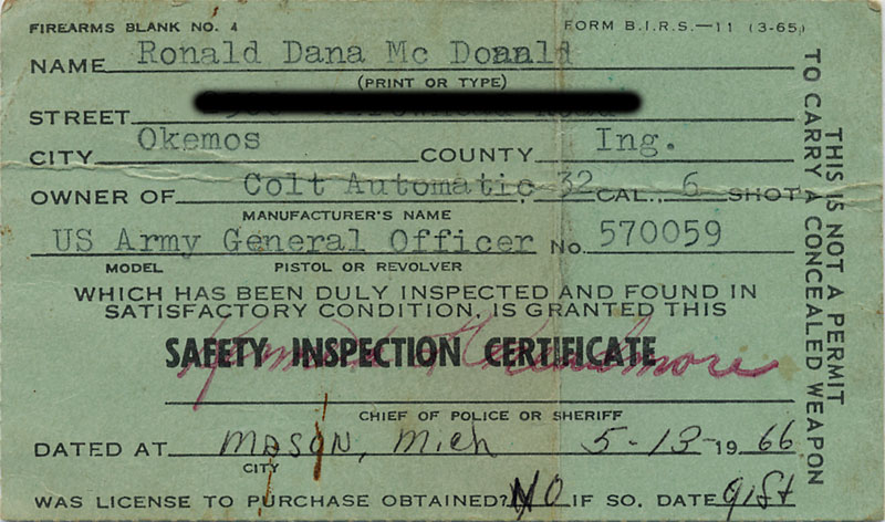 having been issued to Major General Ronald Dana McDonald.